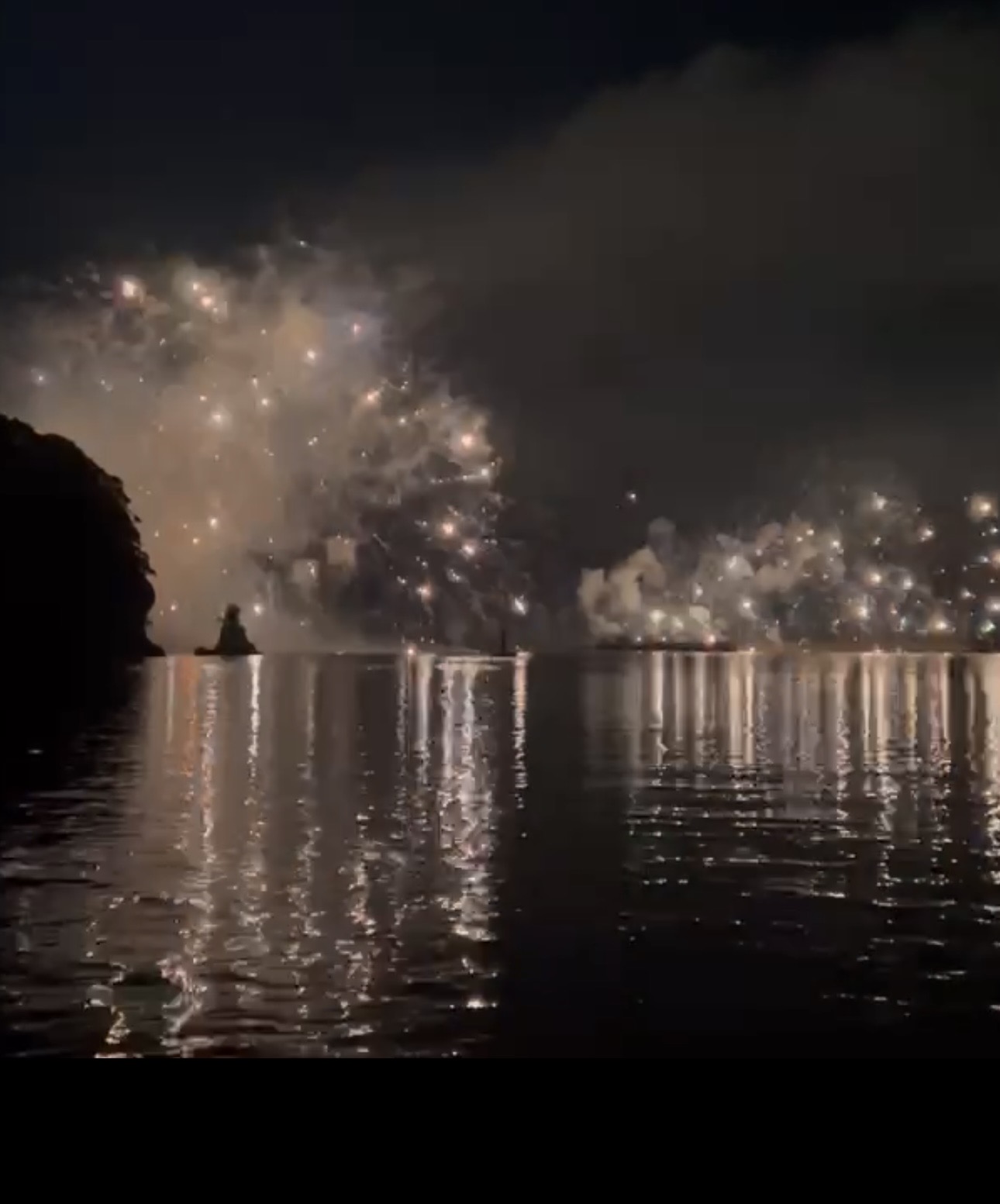 夜の海の上.静かに揺れる船の上空に花火が打ちあがる。一発また一発と夜空を彩る火の花が海面にも美しく反射して、揺らめく光の絨毯のよう。非日常の空間に心が解き放たれる。
